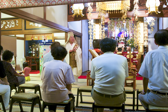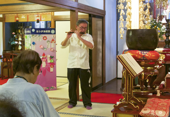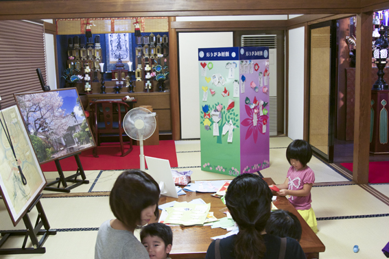 ご来寺頂きました方にお名前を書いて頂いた奉書紙に、住職がご多幸の願いを込めた後、希望の灯りとともに明るく灯させて頂きました。また、お子様には折り紙に願いを込める「おりがみ祈願」を行いました。